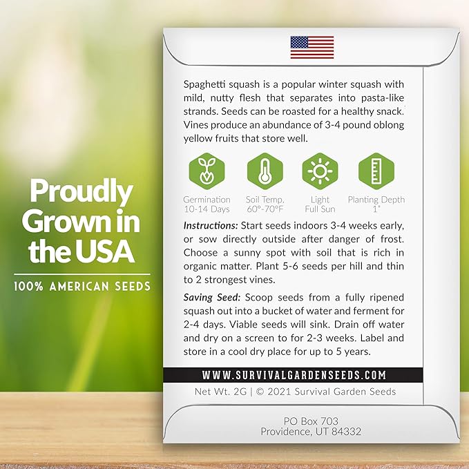 Survival Garden Seeds - Spaghetti Squash Seed for Planting - Packet with Instructions to Plant and Grow Low Carb Healthy Winter Squash in Your Home Vegetable Garden - Non-GMO Heirloom Variety