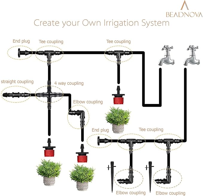 - WIDE APPLICATIONS: These irrigation fittings are essential for watering system, drip system and sprinkle system in vegetable gardens, flower beds, greenhouse and patio. Use irrigation barbed to build yourself a minimal maintenance watering system, save water and energy.