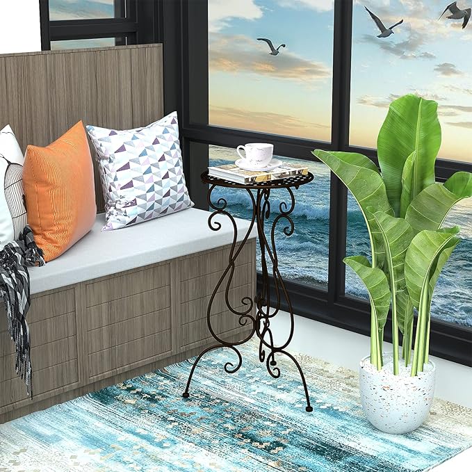 - ❀【Function】This flower holder shelf surface have a rust-proof coating, when watering the plant or place in a humid environment, the iron flower stands will not rust, but retained its deep copper luster. This bonsai display stands short leg design with smooth and curved, with non-slip plastic pads, so you don't have to worry about hurting the ground.