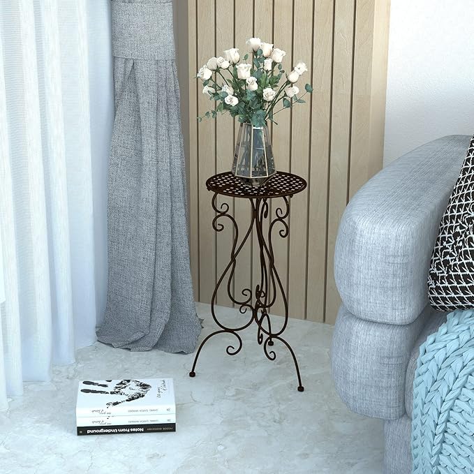 Metal Plant Stand Indoor Outdoor, Heavy Duty Flower Pot Stands 22.5 Inch Tall, Single Plants Pedestal Table for Planter Patio Farmhouse Garden Porch, Brown(1 Pack)