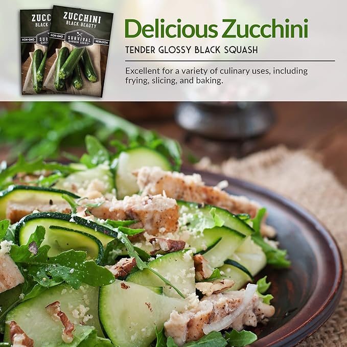 - Tender Delicious Zucchini - Grow prolific Black Beauty Zucchini plants from these heirloom, open-pollinated seeds. This popular summer squash variety was an All-America Selections winner in 1957 for its abundant production of straight dark green zucchini with firm white flesh. The blossoms are also edible and can be stuffed for a delicious summer treat.