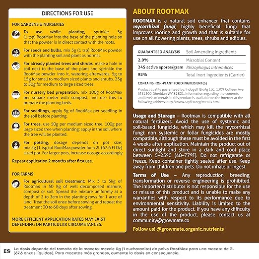 - High Strength: Rootmax has 245 spores per gram of Glomus Intraradices, a beneficial fungus that works with plant roots to help them absorb more nutrients and water from the soil in exchange for sugars.