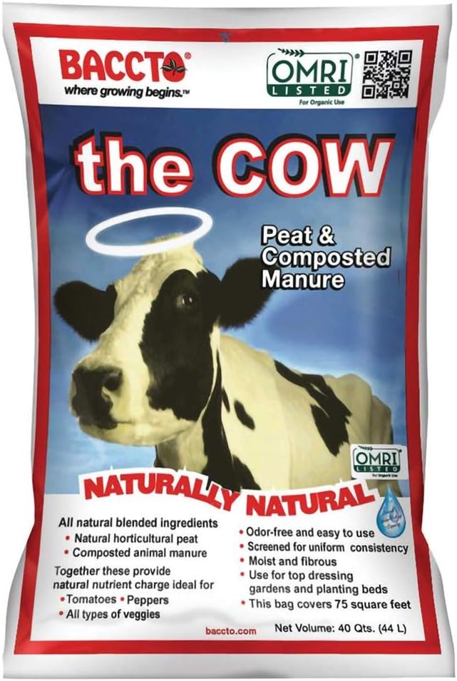 Baccto 1640 Wholly Cow Horticultural Compost and Manure for Soil Amendment, Lawn Care, & Garden Beds, 40 Quart Bag (2 Pack)