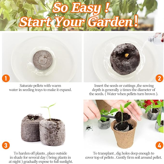 - Wide Application: Seeds starter pellets are great for starting your veggies, garden plants indoors or outdoors, such as tomatoes, peppers, evening primrose, making your seedling work easier and lower cost; You can also plant it with your kids, especially for gardening and growing enthusiasts