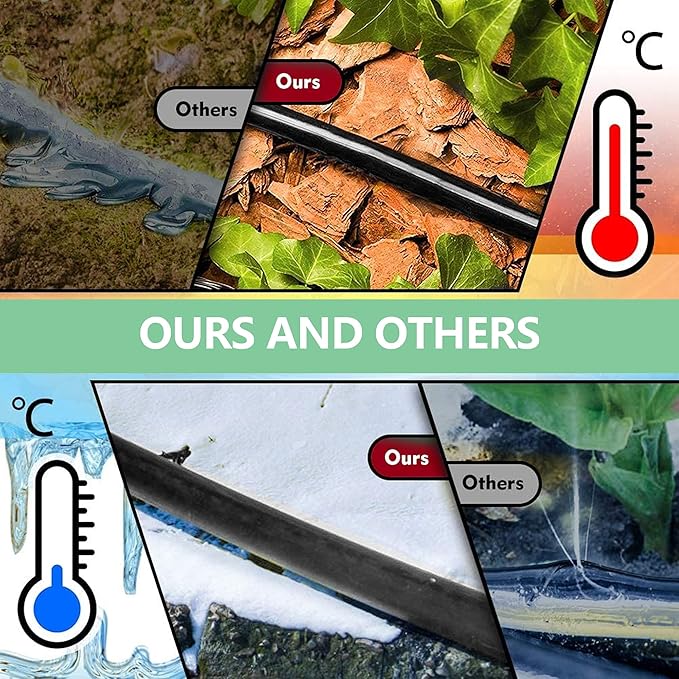 - WIDE RANGE OF USES: Hourleey drip hose is suitable for automatic plant watering system, garden irrigation system, greenhouse self watering system, sprinkler system and misting cooling system.