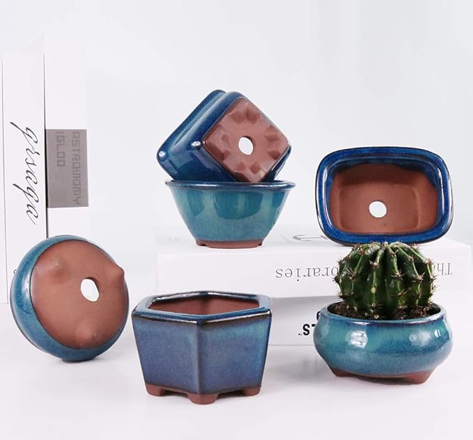 - 1,Extremely Economical: 6 Small Bonsai Tree Starter Pot, 6pcs Drainage Net Pad in the Package, Safe packaging, More Economical than same size and quality Glazed Bonsai Planter.