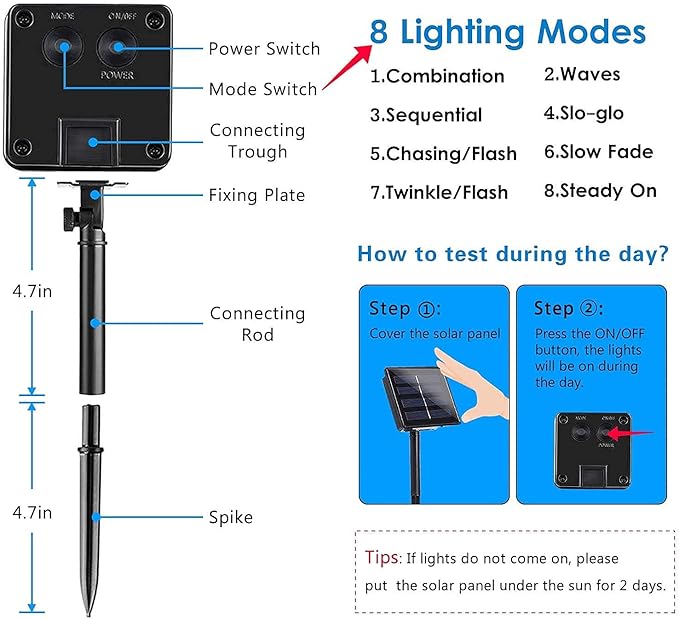 - Easy Installation: The solar panel can be charged by placing it in a sunny location and the lights are ready to use once charged.