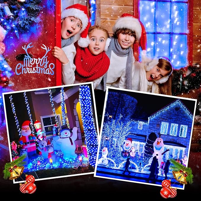 - BUILT TO LAST IN ALL WEATHER: Our IP44 waterproof blue LED Christmas lights are designed for durability, making them ideal for both indoor and outdoor use. Whether decorating your garden, balcony, or living room, these lights are built to shine through snow, rain, or frosty nights, making your Christmas even more magical(Notes:plugs are not waterproof and need to be protected)