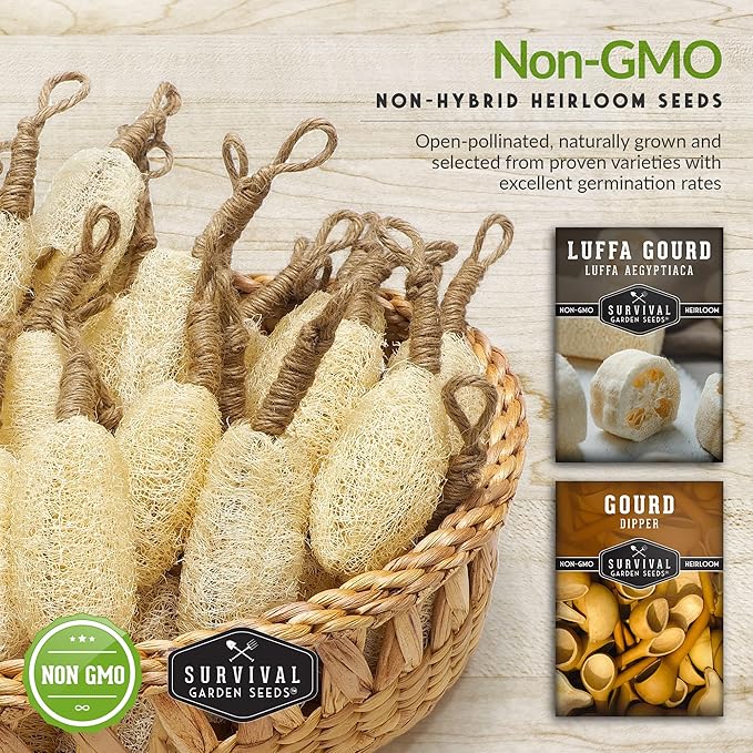 Survival Garden Seeds Dipper & Luffa Gourd Seeds for Planting – Grow Ornamental & Craft Gourds of Loofah & Dipper Variety in Your Home Vegetable Garden – Non-GMO Heirloom Seed Varieties
