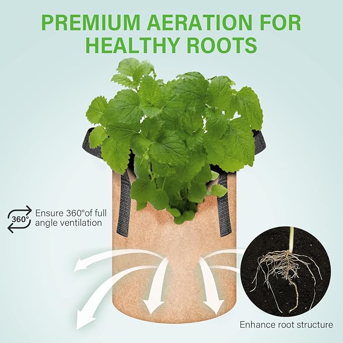 - Breathable for root formation: The nonwoven fabric pots keep your plant roots stay aerated and are air-pruned. Make roots absorbing nutrients more efficiently and preventing from circling