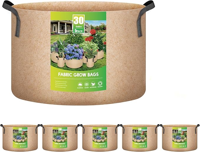 iPower 5-Pack 30 Gallon Plant Grow Bags Thickened Nonwoven Aeration Fabric Pots Heavy Duty Durable Container, Strap Handles for Garden, Tan