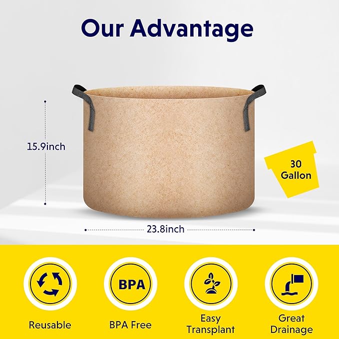 - Breathable for root formation: The nonwoven fabric pots keep your plant roots stay aerated and are air-pruned. Make roots absorbing nutrients more efficiently and preventing from circling
