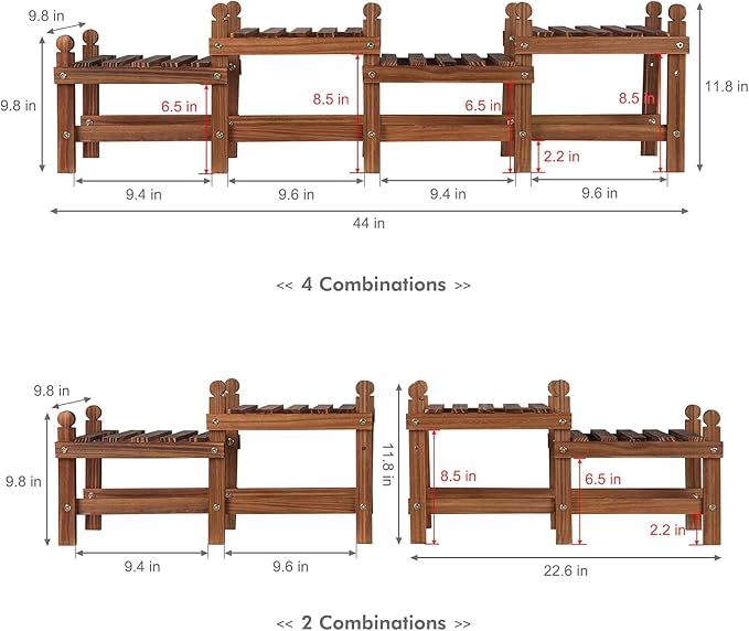 - 【MULTIPLE COMBINATION WAYS】JOTBOOM small,light weight,space saving plant bench indoor could be used as a decoration narrow shelf to be placed in any corner,balcony,bay window flexible.more combination possibilities bring you more surprises.Such as single flower pot shelf rack length at 11.8”,or two combination flower stand shelf length at 22.4” ,or three combination plant holder rack length at 33.5”,or four combination plant shelf rack length at 44”
