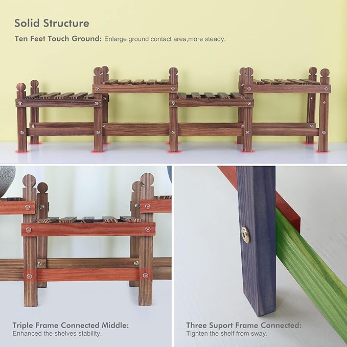 - 【SOLID PINE WOOD】JOTBOOM corner plant stand selects integral pine wood,which is hard and stable.Rosin can relieve pressure and improve sleep quality.Undergoing 300 ℃ high temperature carbonization , the wood tiered plant stand water content reduced by 50%, anti-deformation Increased 50% to achieve the function of compression resistance, anti-corrosion, durable for many years; Clear and uniform surface texture suitable for any decorative furniture, indoor and outdoor use