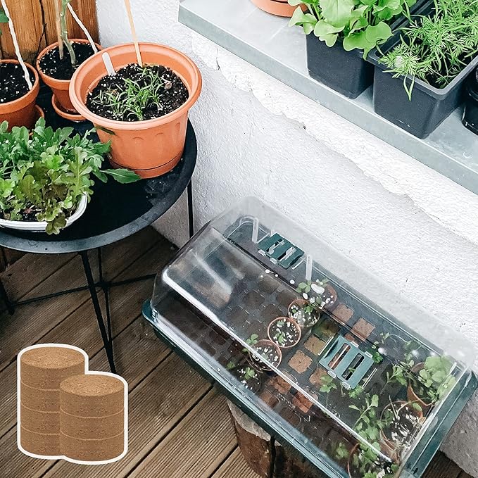 ZeeDix 50pcs(30mm) Compressed Coco Coir Fiber Potting Soil- Coir Medium, Coconut Soil for Indoors or Outdoors, Bonsai, Herbs, Plants, Flowers and Vegetables