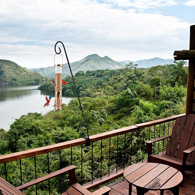 - Deck Hook Smart Design:28-inch bird feeder pole, a longer distance guard against squirrels. Things like bird droppings and seeds all fall off the deck, making it easier for you to clean up.
