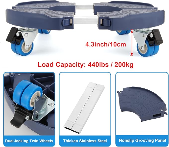 - HEAVY DUTY: Meet our powerhouse plant caddy, with a staggering 440-pound load capacity—leaving ordinary stands in the dust. Strong enough to move hefty planters, garden pots, or even hefty machinery. Ideal for both indoor and outdoor use, it's the ultimate helper for moving your umbrella base stand, garden pots, heavy plants, potted trees, vases, big Christmas tree, or heavy trash cans