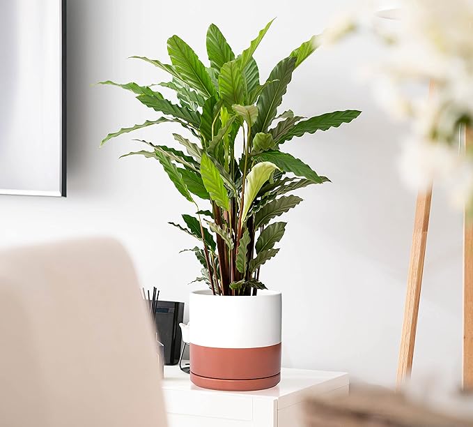 D'vine Dev Set of 2 Plants Pot, 8 Inch Ceramic Planter Pot for Plants with Drainage Hole and Saucer, White/Pottery Red Terracotta, 94-V-D-5