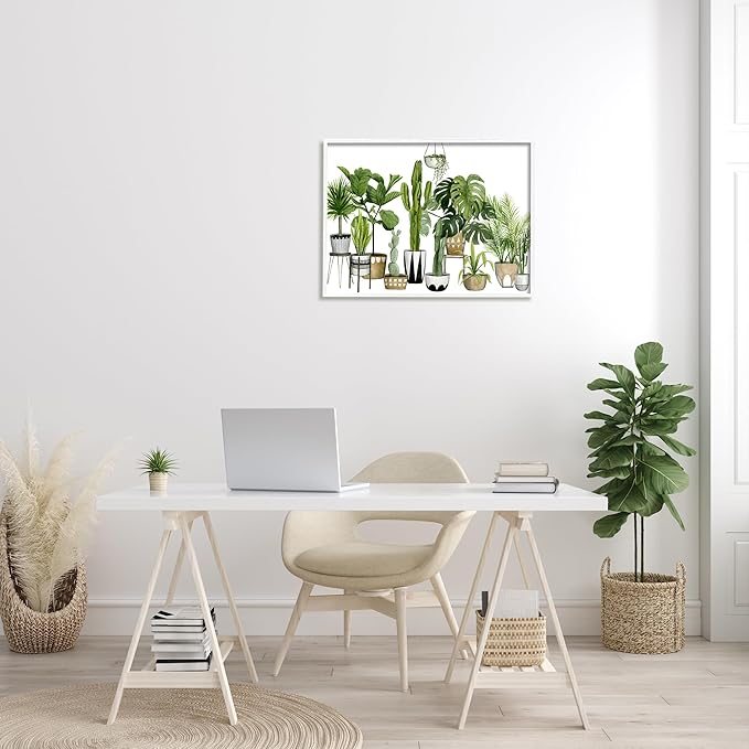 Stupell Industries Boho Plant Scene with Cacti and Succulents in Geometric Pots Watercolor Framed Giclee Art Design by Grace Popp