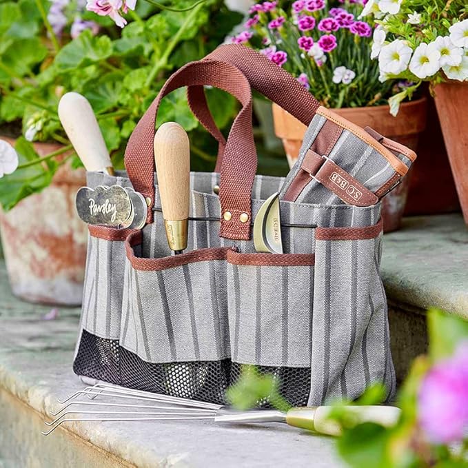 - GARDEN IN STYLE - This is the perfect bag for staying stylish in the garden. Gorgeous yet practical, this beautiful grey striped bag will help keep everything you need by your side while you keep your garden looking stunning.