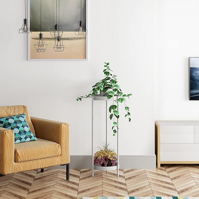 Plant Stand,2 Tier Metal Flower Plants Holder with 2 Removable Display for Indoor or Outdoor,Pot Plant Planter Display(30 X 10in,White)