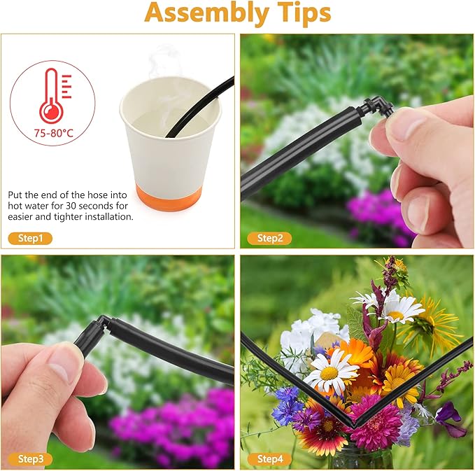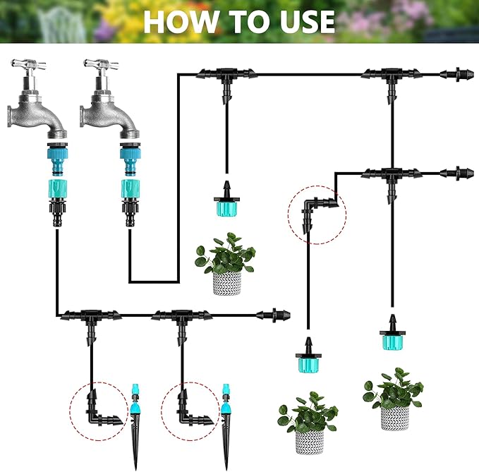 - ✔【Easy to Install】: This drip irrigation elbow connectors fits for 1/4 inch irrigation tubing is easy to be installed without glue, tools, or clamps. Push the tubing firmly over the tee fitting.Tips:Put the tubing end into 75°~80° hot water for 30 seconds before pushing them.