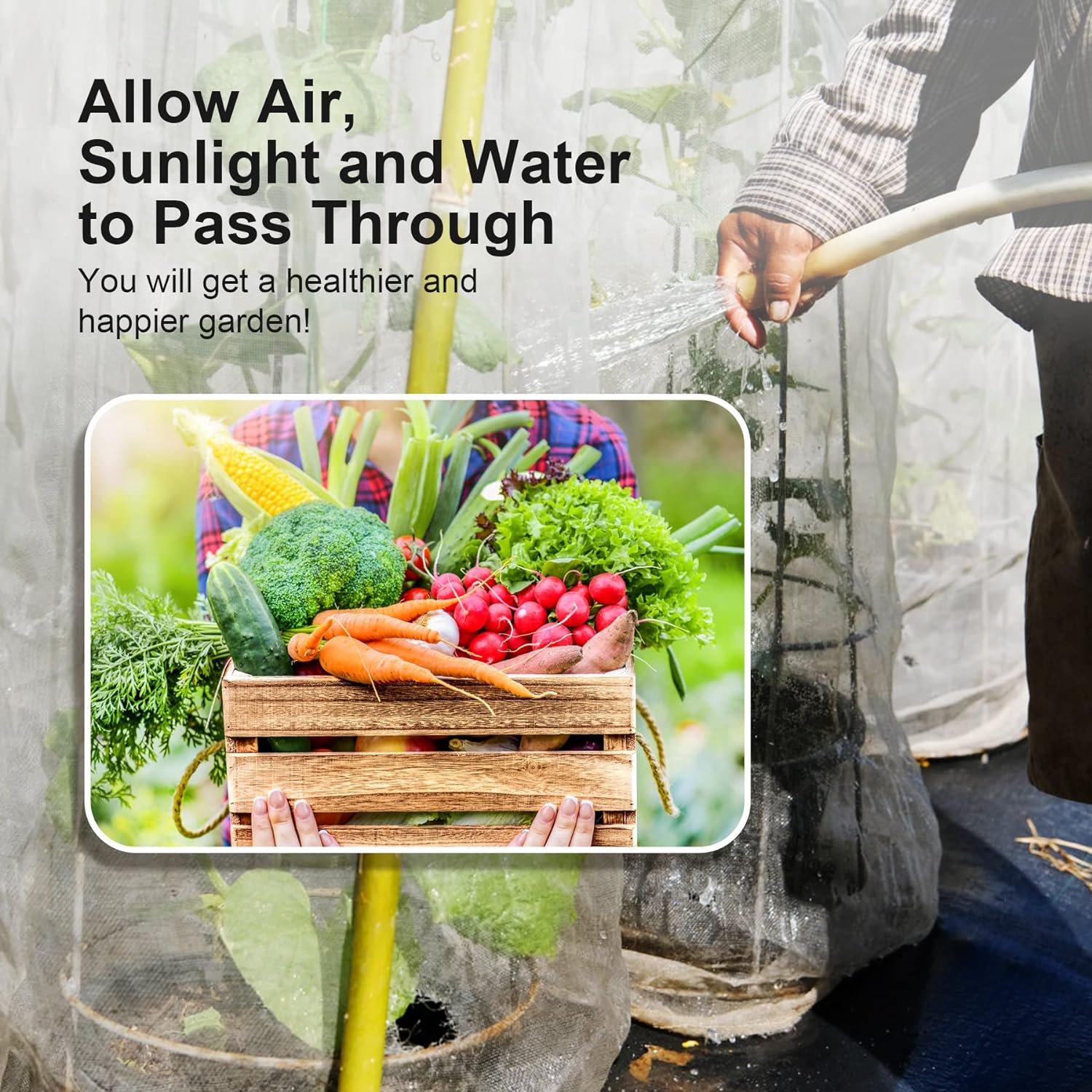 - 🥕Convenient to Use: Air, water and light enter through the net easily, you can put it on any garden hoops, beds or fruits or vegetable cages, no need to remove it when watering