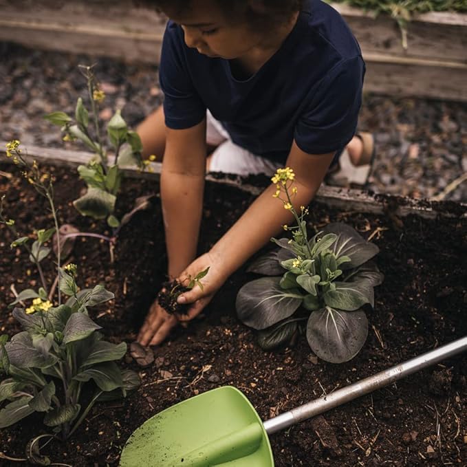 - Fiskars Kids’ Essential Landscaping Set includes a right-sized shovel and rake designed to allow kids to help out around the yard, all year long