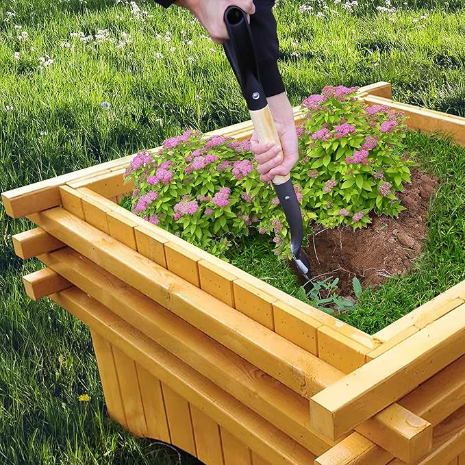 Shovel for Digging 28 In Small Round Shovel with D Handle Kids Metal Beach Shovel,Camp Shovel ,Garden Shovel ,Gardening Tools Wooden Handel, Yellow Wood, 28In