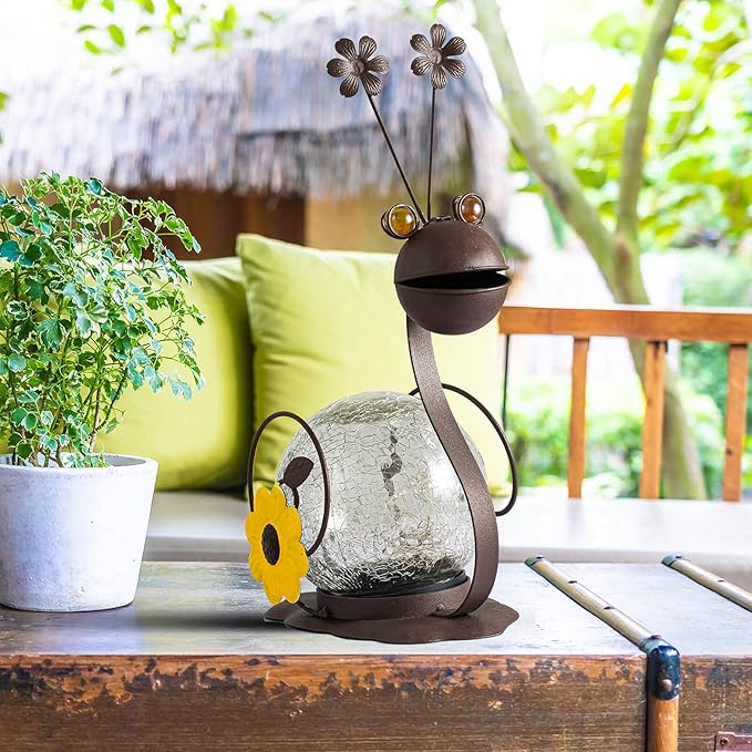 - The 2-Pack solar globe lights are decorated in a combination of 4.73" crackle glass ball and metal snail, making the snail ornament such a creative gift. Measurement: 12.6 x 9.8 x 4.73 inch.