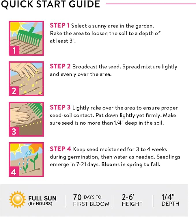 - 25,000 NON-GMO SEEDS: The Monarch Sanctuary mix covers up to 1,000 square feet and is ideal for most soil types. Select a sunny area to scatter the seed. Flowers grow 2-6’ tall, blooming in spring to fall.
