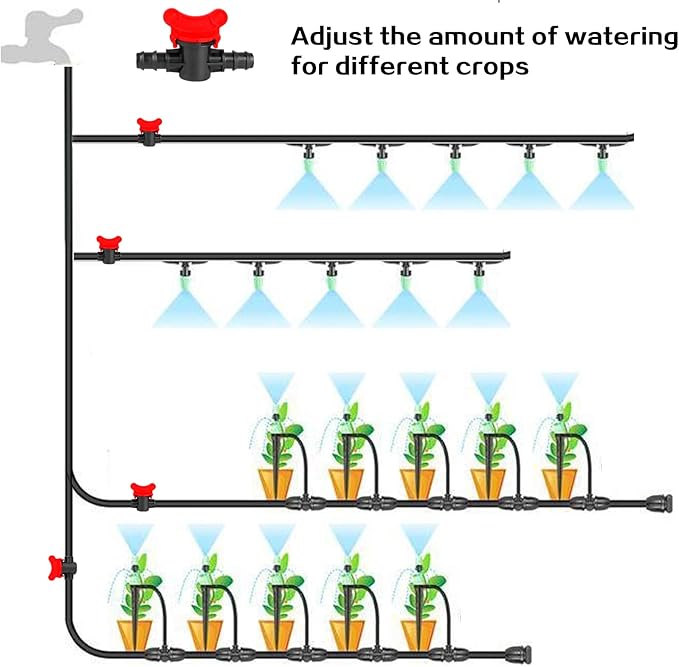 - Easy to operate. Open the red valve of the drip irrigator to adjust or completely shut off the water, which is easy to operate.
