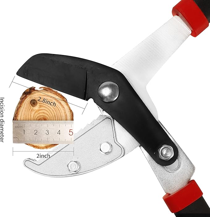 - 【POWERFUL COMPOUND ACTION SYSTEM】Our heavy-duty compound lever system maximizes cutting power with multiple pivot points and moving parts, tripling the force applied to the blades. With a 29.5” long handle, even hard-to-reach areas become easily accessible, making pruning a breeze