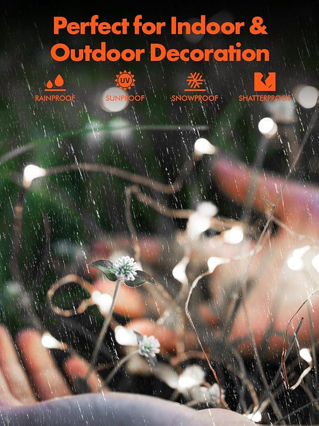 - Widely Outdoor Decorations: These solar lights are perfect for Christmas outdoor lighting. The soft string can be wound on signs, plants and furniture. Suitable for Christmas, New Year, Party, Valentine's Day, Wedding, Home, Window, Bathroom, Festival, Holiday, Shows, Restaurant, Hotel, Commercial building, Shopping center etc