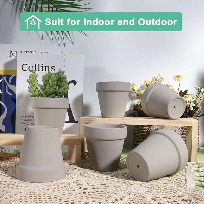 vensovo 3 Inch Grey Terra Cotta & Terracotta Pots with Drainage - 20 Pack Clay Flowerpots, Succulent Nursery Planter Great for Plants, Crafts, Wedding Favor