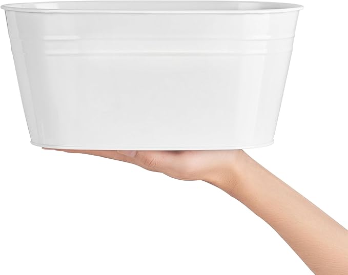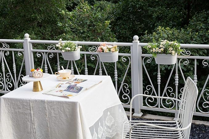 Dahey Metal Iron Hanging Flower Pots for Railing Fence Outdoor Planters Hanging Bucket Pots Countryside Style Window Flower Plant Holder with Detachable Hooks Home Decor,White,5 Pcs