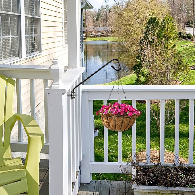 2 Packs 11 inches Fence Deck Hook Rail Hook Hanging Hook Mounting Kit Heavy Duty Bird Feeder Hook Decorative Hook Hanger for Bird Feeders Planters Suet Baskets Lanterns on Balcony Porch Railing Fence