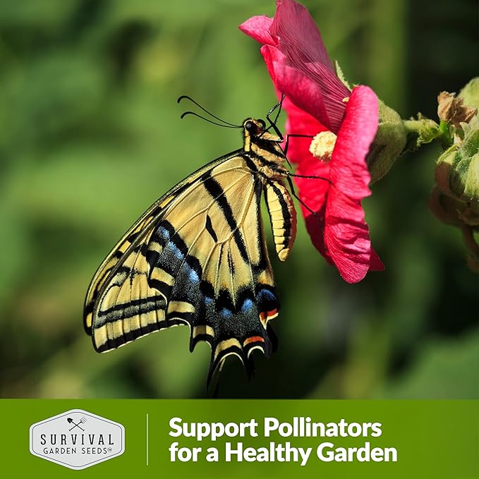 Survival Garden Seeds - Single Mixed Hollyhock Seed for Planting - Packet with Instructions to Plant and Grow Colorful Spikes of Flowers in Your Home Vegetable Garden - Non-GMO Heirloom Variety