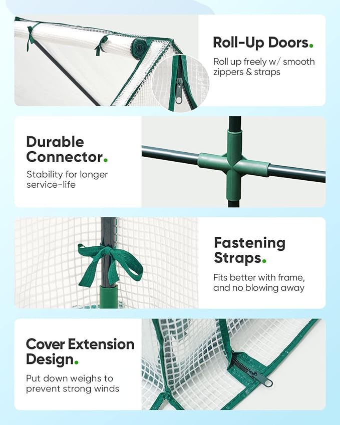 - OVERLONG COVER DESIGN - It makes this green house more airtight and secure. Just bury it in the soil, or put some bricks on it. An easy but useful way.