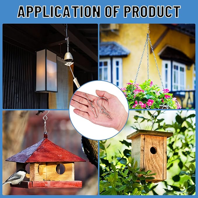 - Suitable occasion: these stainless steel hanger swivel clips are suitable for hanging the ornament that can rotate, such as windmills, crystal winders, billboards, retail products, display flags, windsocks, flower pots, plants, bird feeders, solar lights, Christmas lights, etc., to adorn your party, entertainment, holiday and festival more romantic
