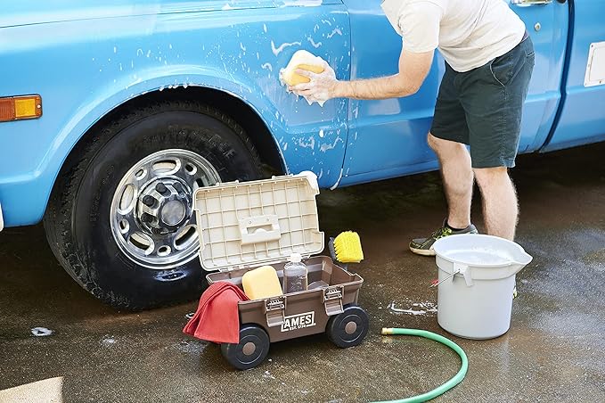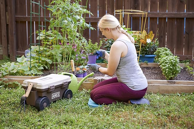 AMES 20213200 Rolling Lawn & Garden Storage Cart for Storing Tools & Cleaning Supplies, Lid Doubles as Seat, 225 lb. Weight Capacity