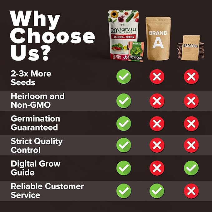 - Grow Thousands of Pounds of Food - With over 10,000 Seeds you will be able to grow a lush vegetable garden enough to grow, cook, and eat all year. Seeds are packed in a beautifully designed waterproof resealable mylar pouch to maintain freshness and quality which allow for long term storage, making it the perfect addition for your emergency preparedness items.