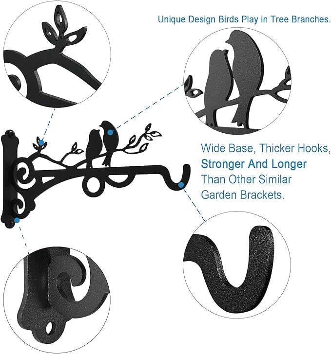 - 【Unique Design Plant Hangers】Arc shape hooks, perfect curved hanging structure, 2 birds playing in tree branches making your house and garden more attractive.