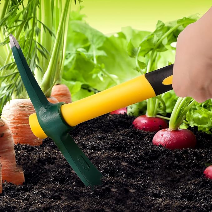 - FEELS COMFORTABLE - With a good weight and not too tiring to swing it over and over again, the garden pickaxe help relieve joint stress you get when tugging things out of the ground, sharp and durable for long time use without sore.