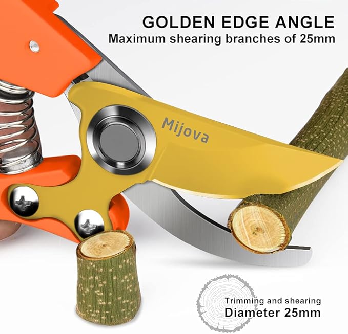 - GOOD ENDURANCE, SUPER SHARP: high quality pruning shears for gardening, built utilizing SK-5 Steel that meets the highest standards and gives you precision on each cut,the thick branches can be easily cut off, relieving hand fatigue and soreness, and the gardening tools are easy to use even if the hands have arthritis.