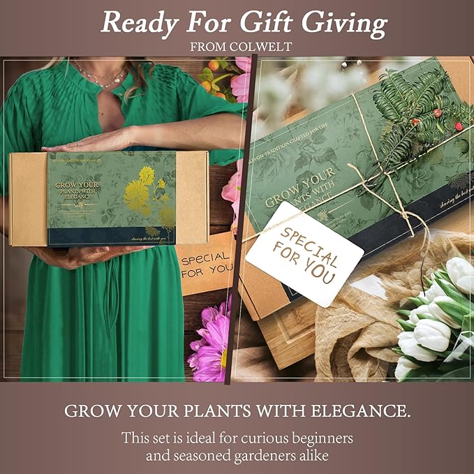- 【READY FOR GIFT GIVING】 - Grow your plants with elegance. Functional yet elegant, this garden tools set is what every gardener needs. Includes storage tote bag, kneeling pad, garden gloves and 5 hand garden tools - pruning shear, trowel, tulip trowel, hand fork, cultivator. An excellent gardening gift for yourself and your favorite gardening enthusiast.