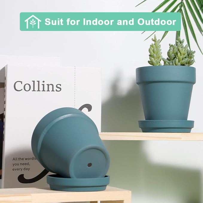 - 【Ideal for Indoor or Outdoor Usage】The terra cotta pots are included Saucer, so you can put them at your balcony, windowsill, table or working desk.