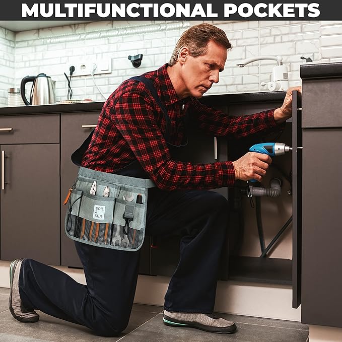 - MULTIFUNCTIONAL POCKETS: With numerous convenient pockets of different dimensions, this garden tool belt is ideal for holding all sorts of essential tools, from pruners, snips, pens, pencil, notepad, sprayer, wrench and much more!