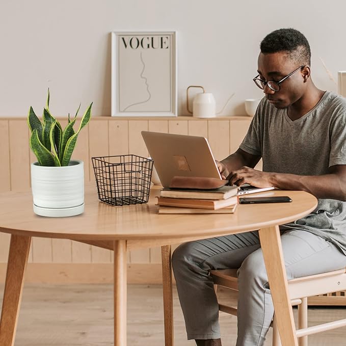 - If you would like to show your beautiful plants as decoration, this matte white pot is a good choice, which is suitable for indoor/outdoor plants. It is made of ceramic with circular patterns and textures, highlighted with matte glaze. Not only will it bring your plants beauty and charm, but also fully show your fashion sense.
