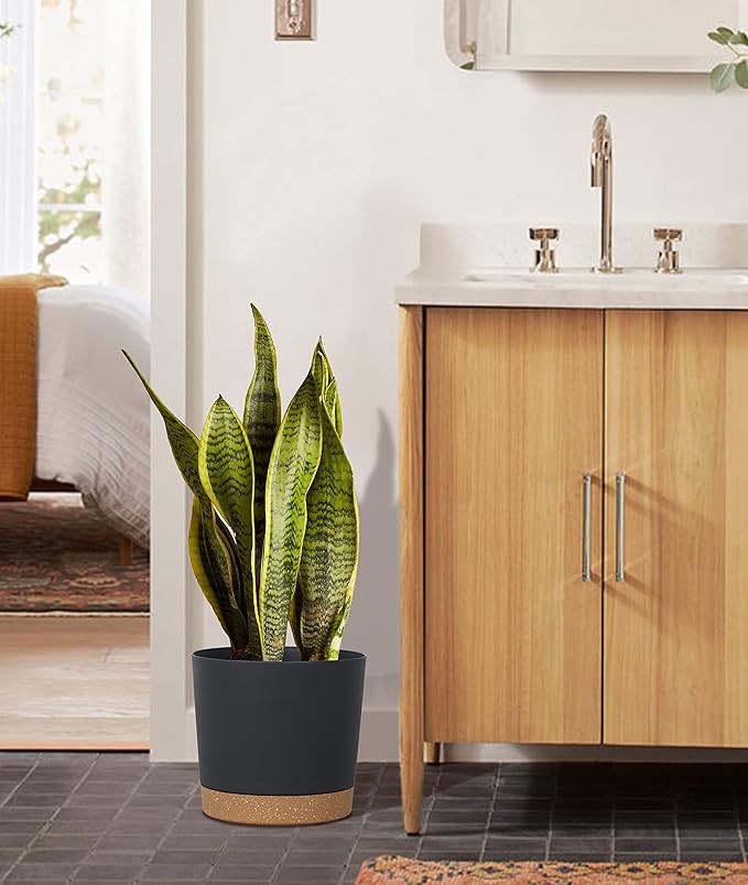kubvici Plant Pots for Indoor Plants, 2 Pack 8 Inch Plastic Flower Pot Planters with Drainage Saucer for Indoor Outdoor Garden Home (8” Black)